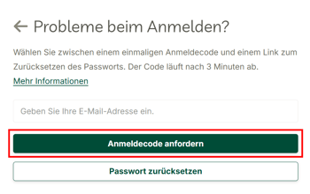 Wählen Sie die Option zum Anfordern des Anmeldecodes. Falls Sie stattdessen Ihr Passwort zurücksetzen wollen, finden Sie weitere Informationen im Artikel Wie kann ich mein Passwort zurücksetzen?.