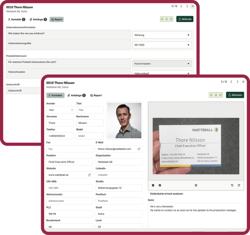 Sehen Sie auf einen Blick, ob ein erfasster Kontakt bereits in Ihrem CRM-System vorhanden ist.