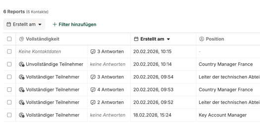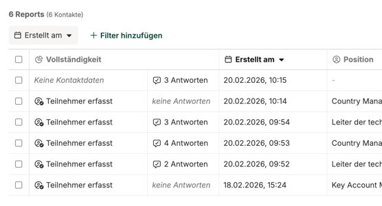 - Teilnehmer-Status: Zeigt an, ob Kontaktdaten erfasst wurden