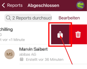 - "In Bearbeitung": Tippen Sie auf den Report und schließen Sie den Report ab und klicken am Ende auf "Abschließen un in CRM exportieren."