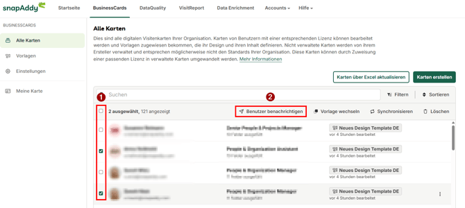Als Admin oder BusinessCards Manager: Benutzer per E-Mail benachrichtigen