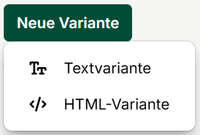 - Klicken Sie auf Neue Variante und wählen Sie zwischen einer Text- oder HTML-Konfiguration.
