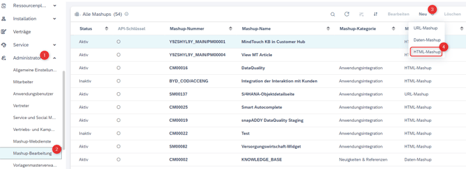 - Gehen Sie zu Administrator → Mashup-Bearbeitung.