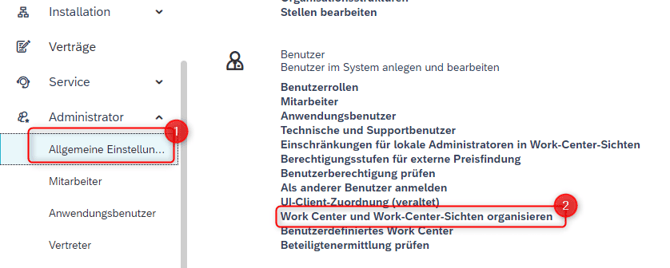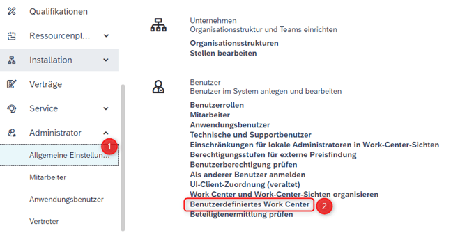 - Gehen Sie zu Administrator → Allgemeine Einstellungen → Benutzerdefinierter Work Center.