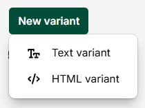 - Convert to HTML: Converts a text variant to HTML format, enabling advanced design options. An HTML variant cannot be converted into a text variant.