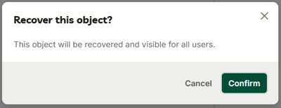 - A confirmation dialog will appear. Click Confirm to complete the restoration.