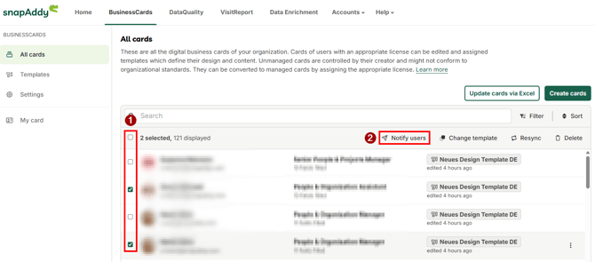 As an Admin or BusinessCards Manager: Notify users via email
