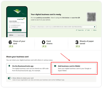 - Click the button to add the business card to your wallet.