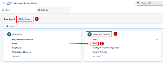 - Go to All Settings → User and Control → Roles.