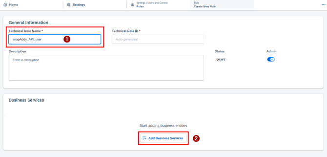 - Assign a unique name (e.g., "snapAddy_API_user") and add the required Business Services. You can adjust these services later as needed.