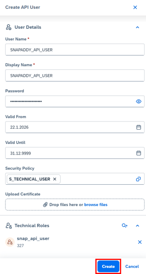 - Create a new technical User ( API User)