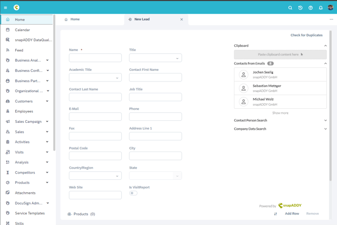 IMPORTANT: Please make sure that you have integrated snapAddy LeadResearch in SAP Sales Cloud, before you start with the following tutorial.
