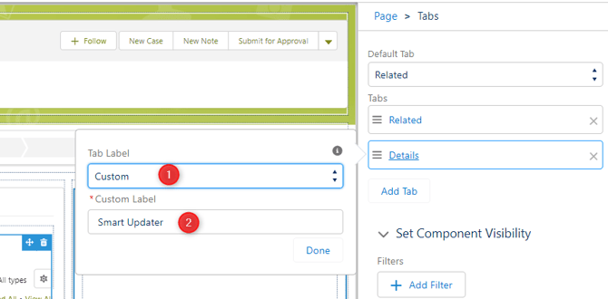 - Select Tab Label "Custom" and set the Custom Label to "Smart Updater"