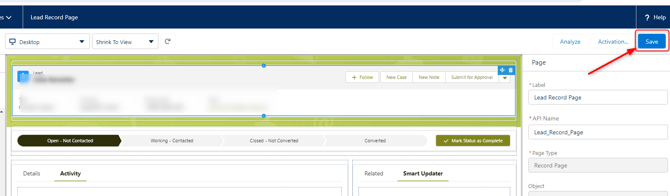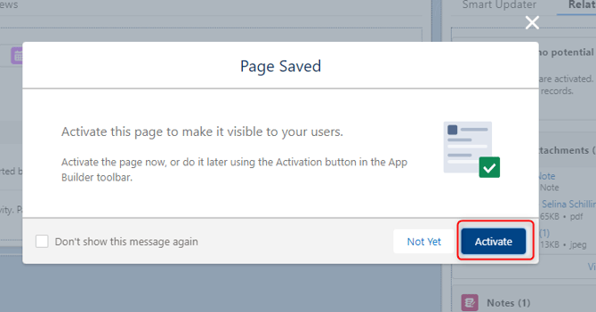 - If you have never applied any changes via the Lightning App Builder to this page before you will be asked to activate it. Click on "Activate".