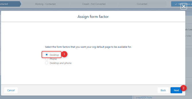 - Select "Desktop" when assigning the form factor and click "Next".