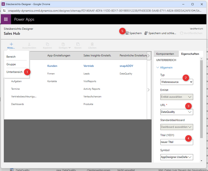 Adding the new web resource as a tab to the Dynamics sidebar