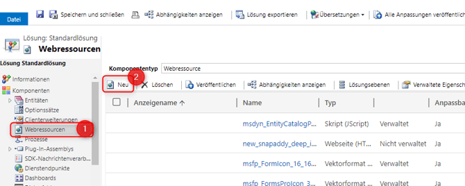 - Select the Web resources entry (picture: Webressourcen) in the list on the left and click on New (picture: Neu).