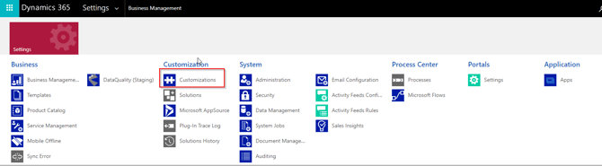 Click on Settings and select customizations.