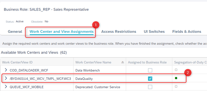 - Add a Custom Work Center View also named: snapAddy LeadResearch and assign it to the previously created Work Center.