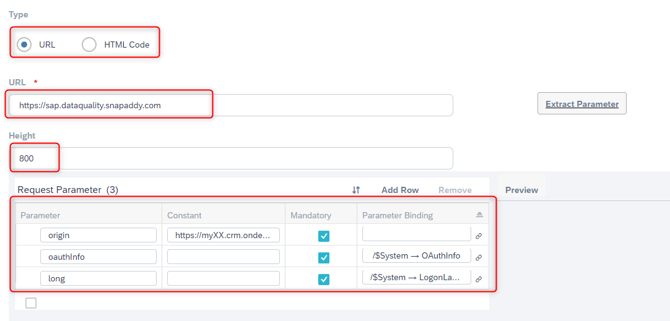 Request-Parameter: Add Row (optional for snapAdd Ayuto-Login - please read our manual at the bottom on how to set up SAP Auto Login in snapAddy)
