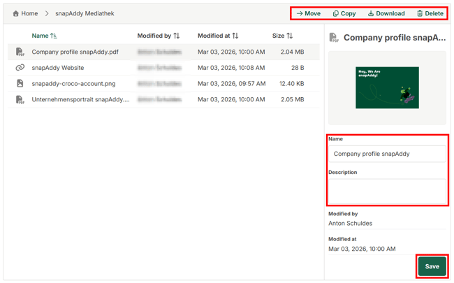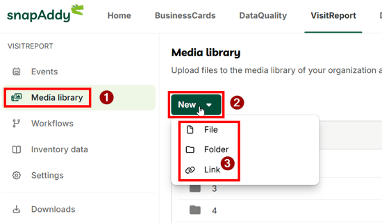 Note: This article describes how to manage the media library in the snapAddy Dashboard. If you want to use the media library in the VisitReport App, please refer to the article How can I operate the media library in the VisitReport App?